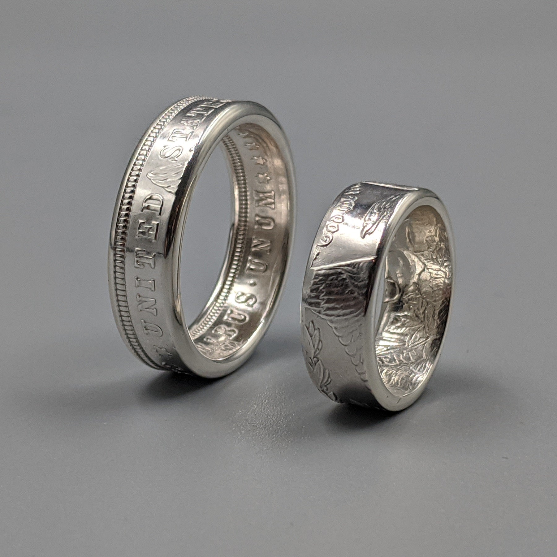 Whether you’re exchanging vows or renewing them, the Morgan Silver Dollar Wedding Band Set honors your bond with rings made to be worn every day and passed down as heirlooms.