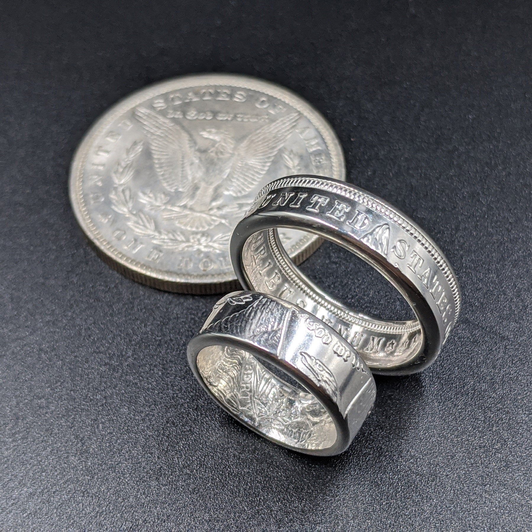 Forged from a single, genuine Morgan Silver Dollar minted between 1878–1904 or 1921, this custom‑made wedding band set is as meaningful as it is beautiful. Each coin carries a century of American history, and when we transform it into two perfectly paired rings, it becomes the ultimate symbol of unity.