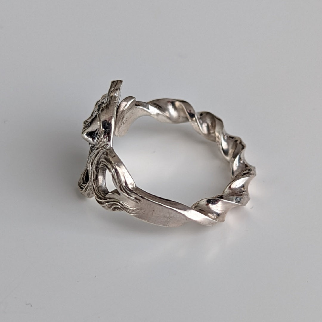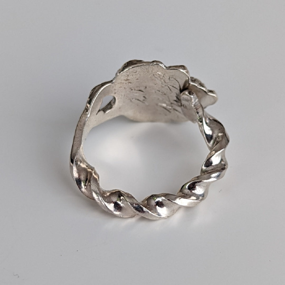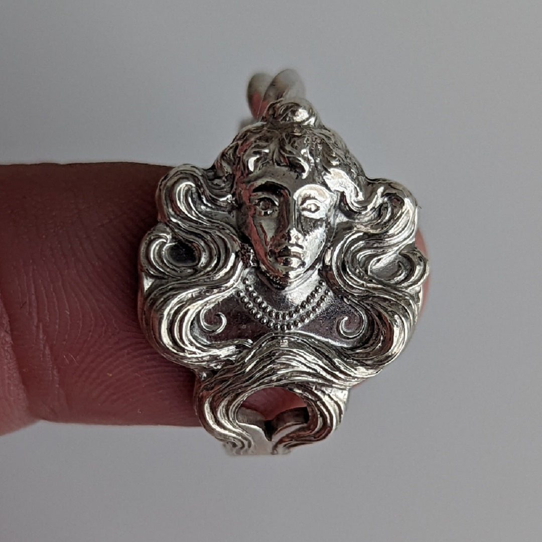 Crafted from vintage solid sterling silver tableware, this unique ring's relief showcases Venus, the goddess of love and beauty with a sparkling polished finish.