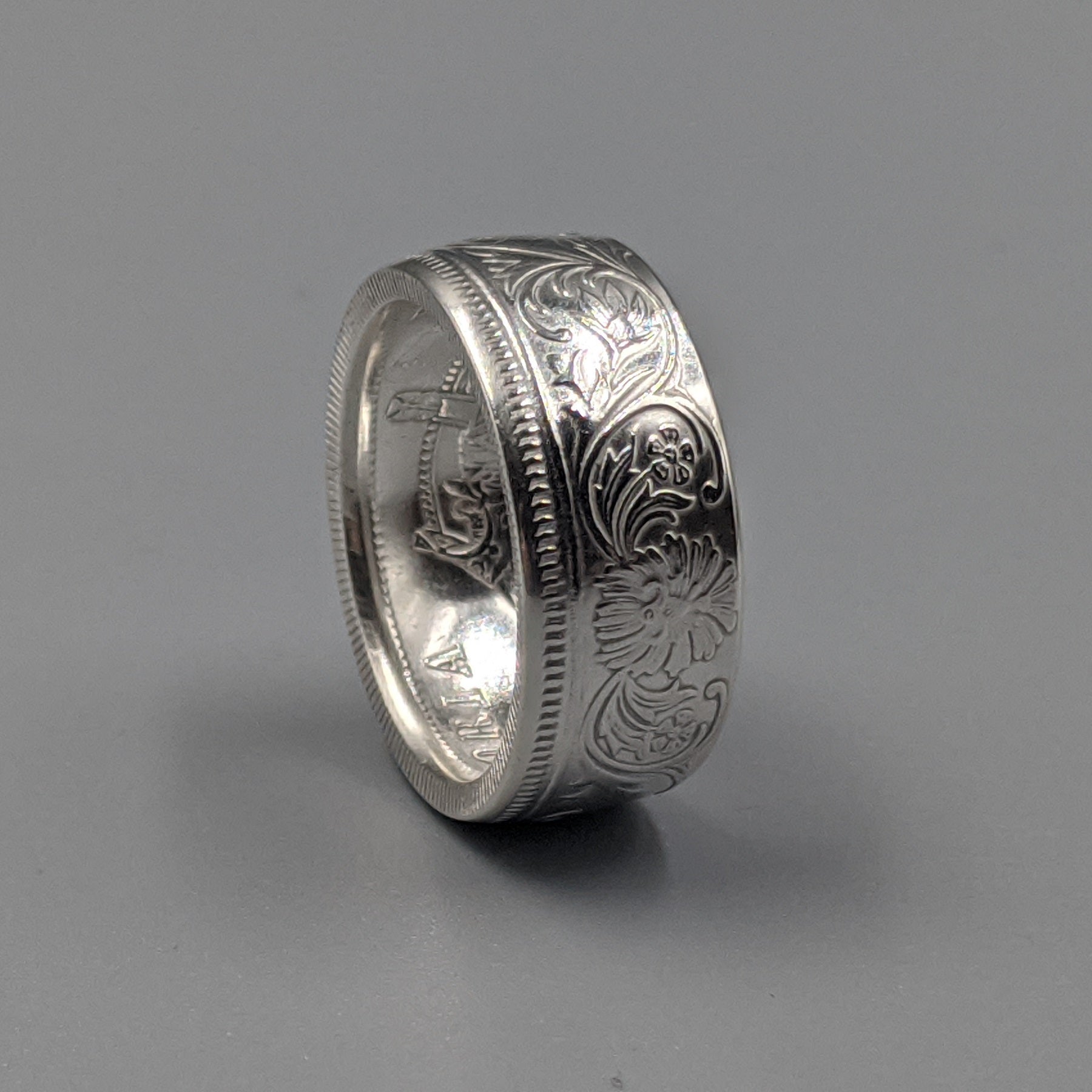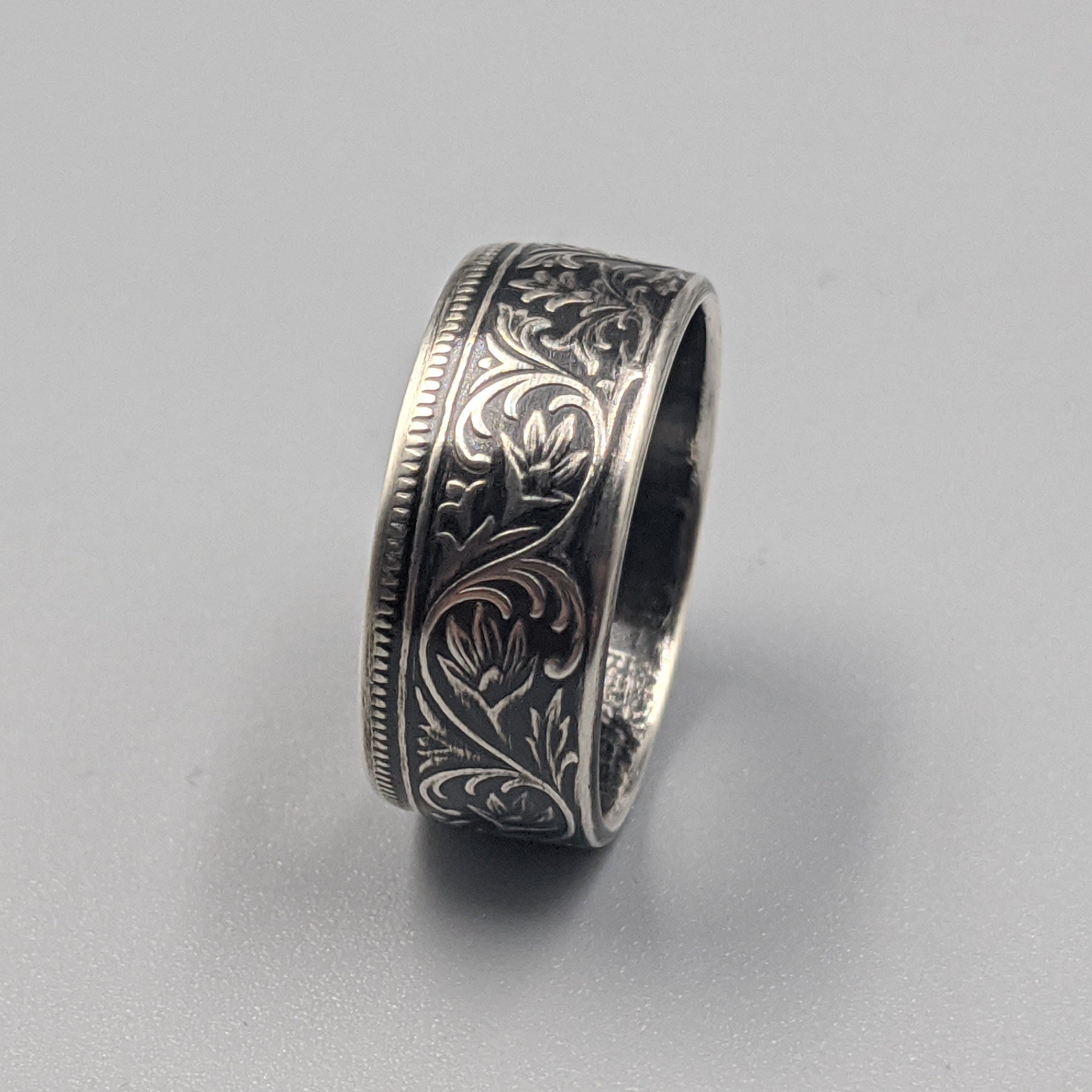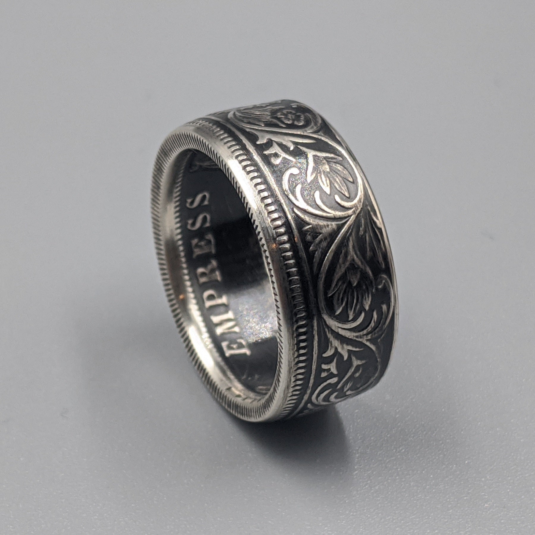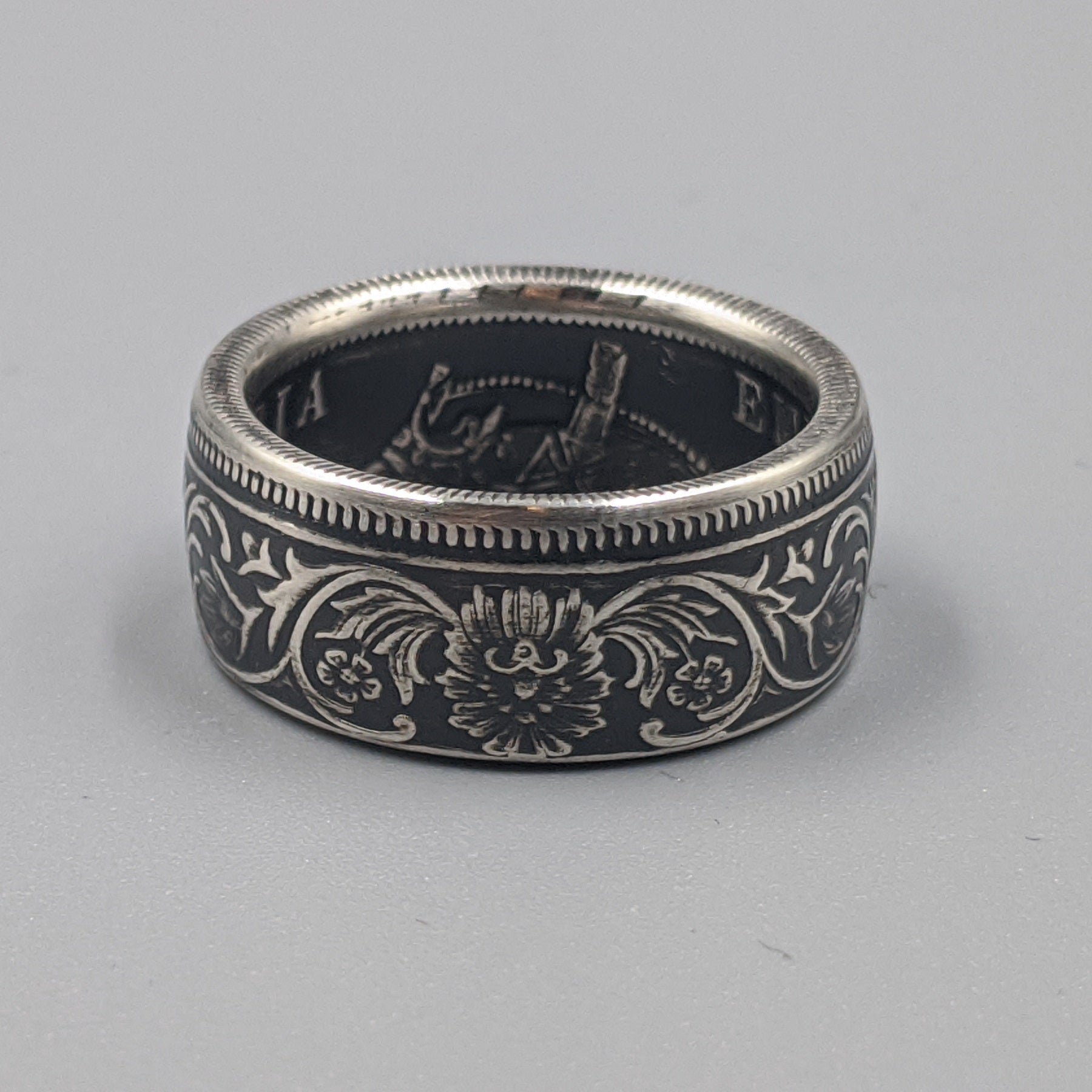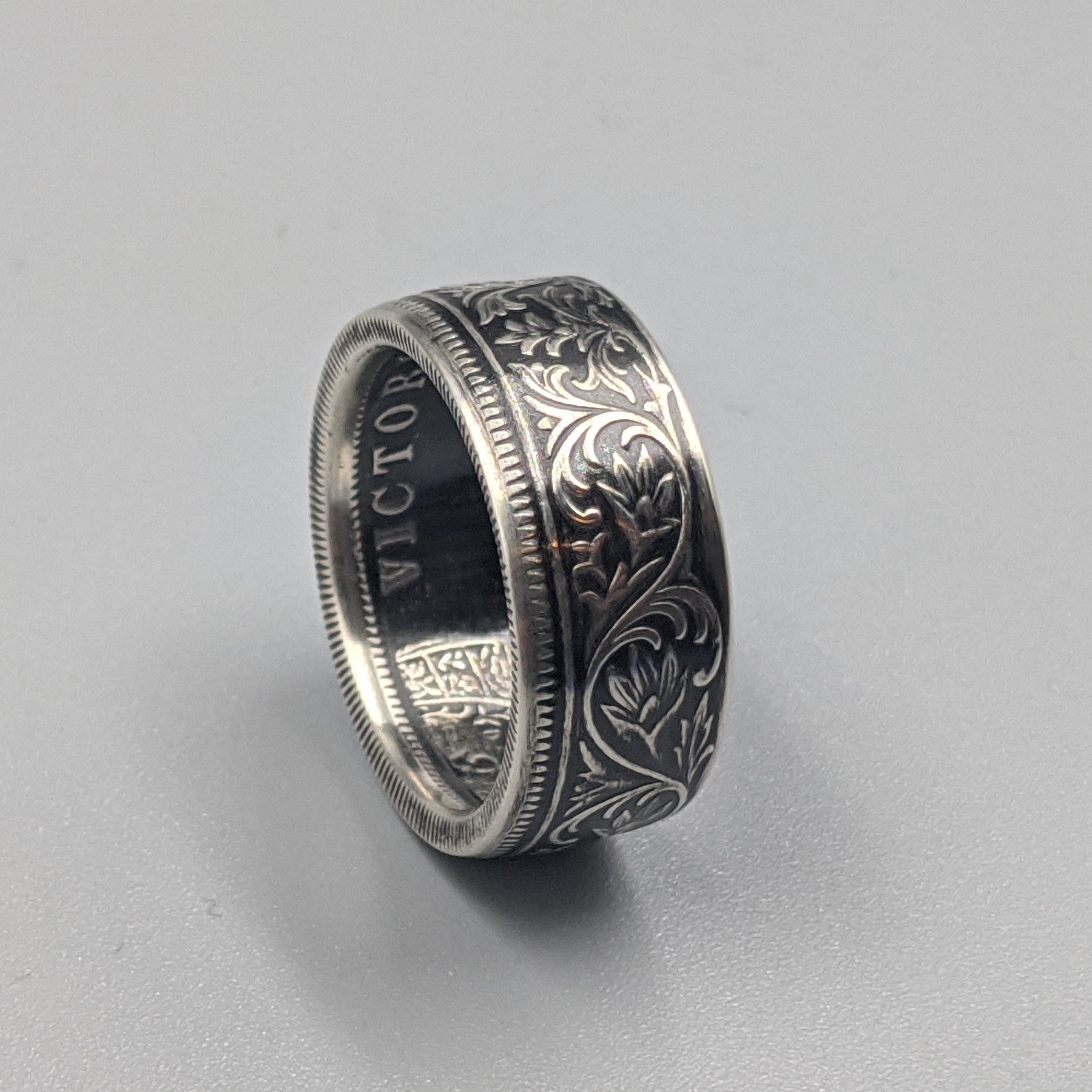 Forged from a genuine British India One Rupee coin, this ring carries the elegance and heritage of the late 19th century. Minted during the reign of Queen Victoria between 1847 and 1901, these coins were struck in .917 fine silver and circulated widely throughout the Indian subcontinent as the backbone of British colonial currency.