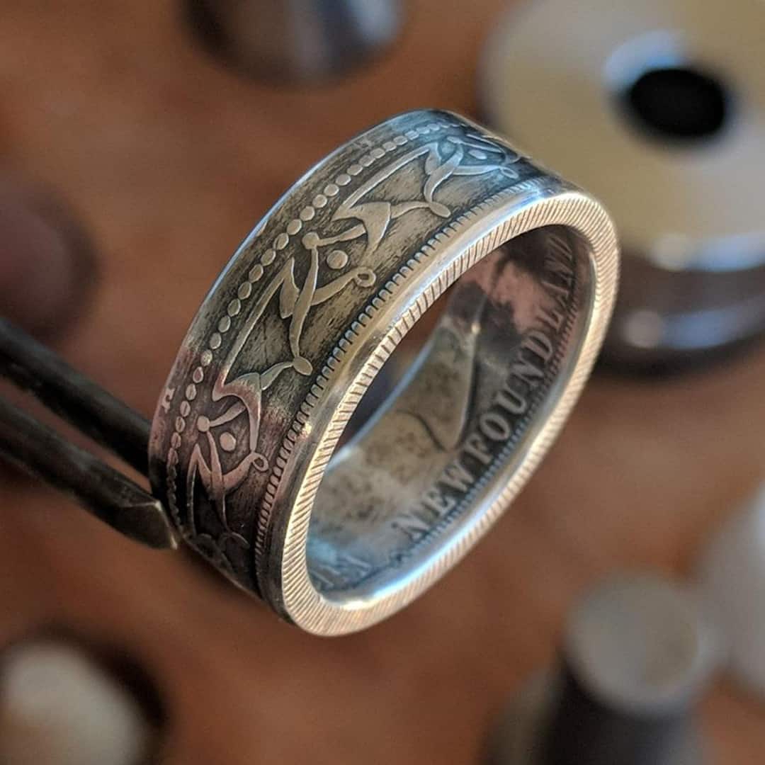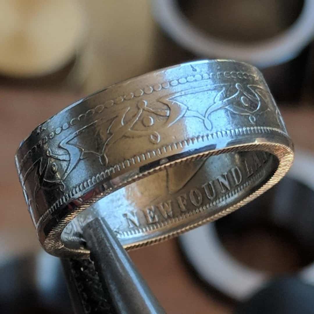 Every ring is forged one at a time from a genuine Newfoundland 50 Cent coin.