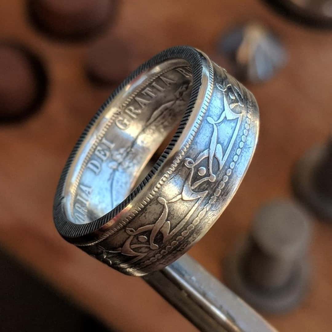 Our craftsmen use a careful, multi‑stage process to preserve the crowned portrait, scrollwork, date, and denomination as the coin is shaped into a ring. Nothing is cast or mass‑produced. Each piece is individually forged, finished, and inspected by hand.