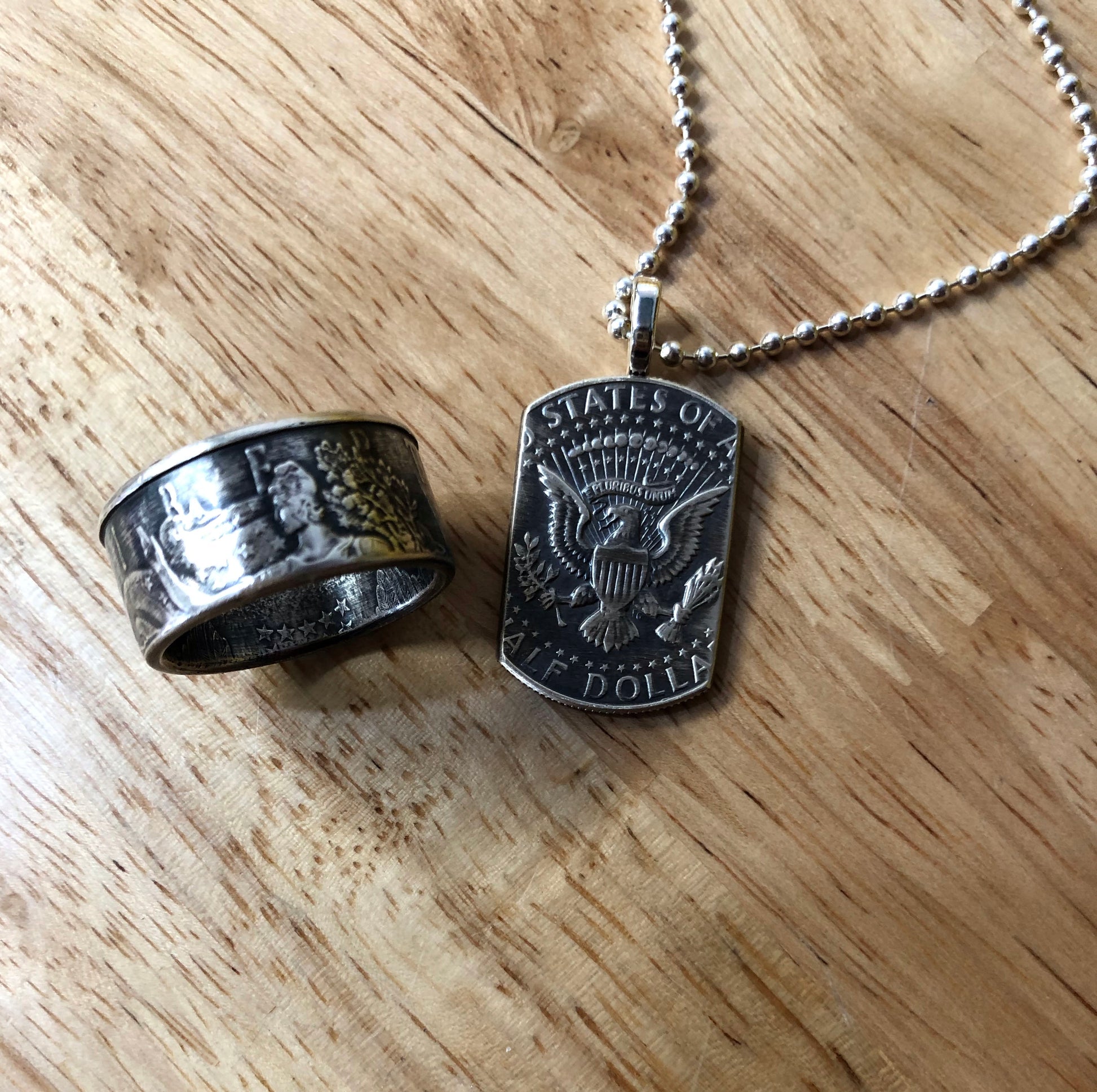 Silver Eagle Coin Ring & American Pride Dog Tag Necklace